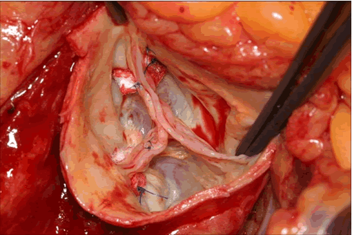 3. The cut edges of the cusp are reapproximated using 5-0 or 6-0 polypropylene suture in an interrupted fashion. (Figure 2).