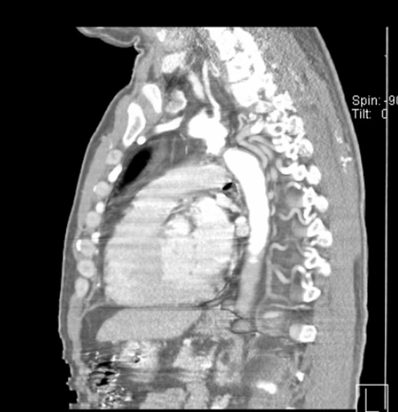 There were no perioperative complications with minimal postoperative bleeding. Extubation occurred 24 hours after surgery. The patient was transferred from the intensive care unit to the intermediate care unit on postoperative day two, and he was finally discharged from the hospital at postoperative day six. Control chest CT angiography revealed a patent graft and good distal flow (Fig. 8 and Fig. 9). The patient recovered uneventfully and continues doing well.