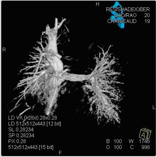 Figure 3. Visualization of the coronary sinus with 3D CT-like imaging. The coronary sinus can be overlayed over live fluoro and thus offers the surgeons or interventionalists the ability to navigate live in 3D anatomy (3D-Roadmap). Imaging: Courtesy of Dr. Gallagher, Central Baptist Hospital, Lexington, Kentucky, USA
