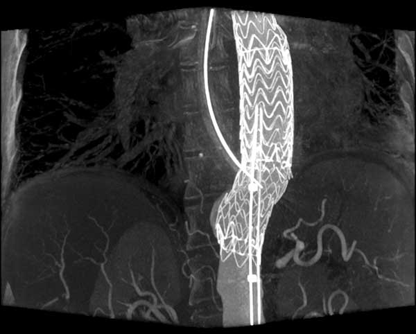 Figure 2. Aortic stent graft visualized with 3D CT-like imaging. Courtesy of Deutsches Herzzentrum Berlin, Germany Courtesy of Prof. Fosse, Rikshospitalet, Oslo, Norway.