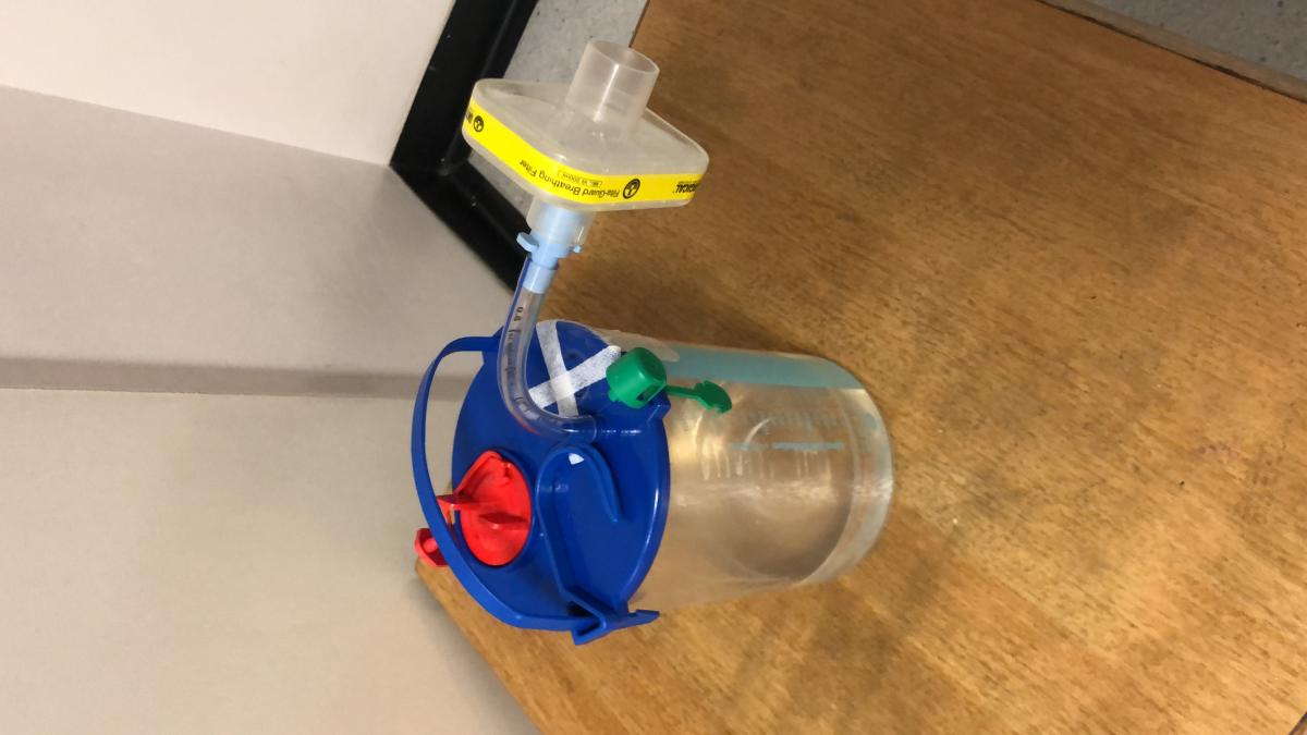When air leaks into a chest drain bottle, it causes the fluid inside to bubble. Given the aerosolization that is likely to occur inside the drain bottle, which then escapes through the suction port or safety valve, this may be a potentially important mode of viral transmission. Alternatives to a traditional chest drain bottle include a number of different digital chest drainage systems. Whilst these do not have a port open to room air, they are not closed systems and the air escapes from the system into the air without any specific viral filter.