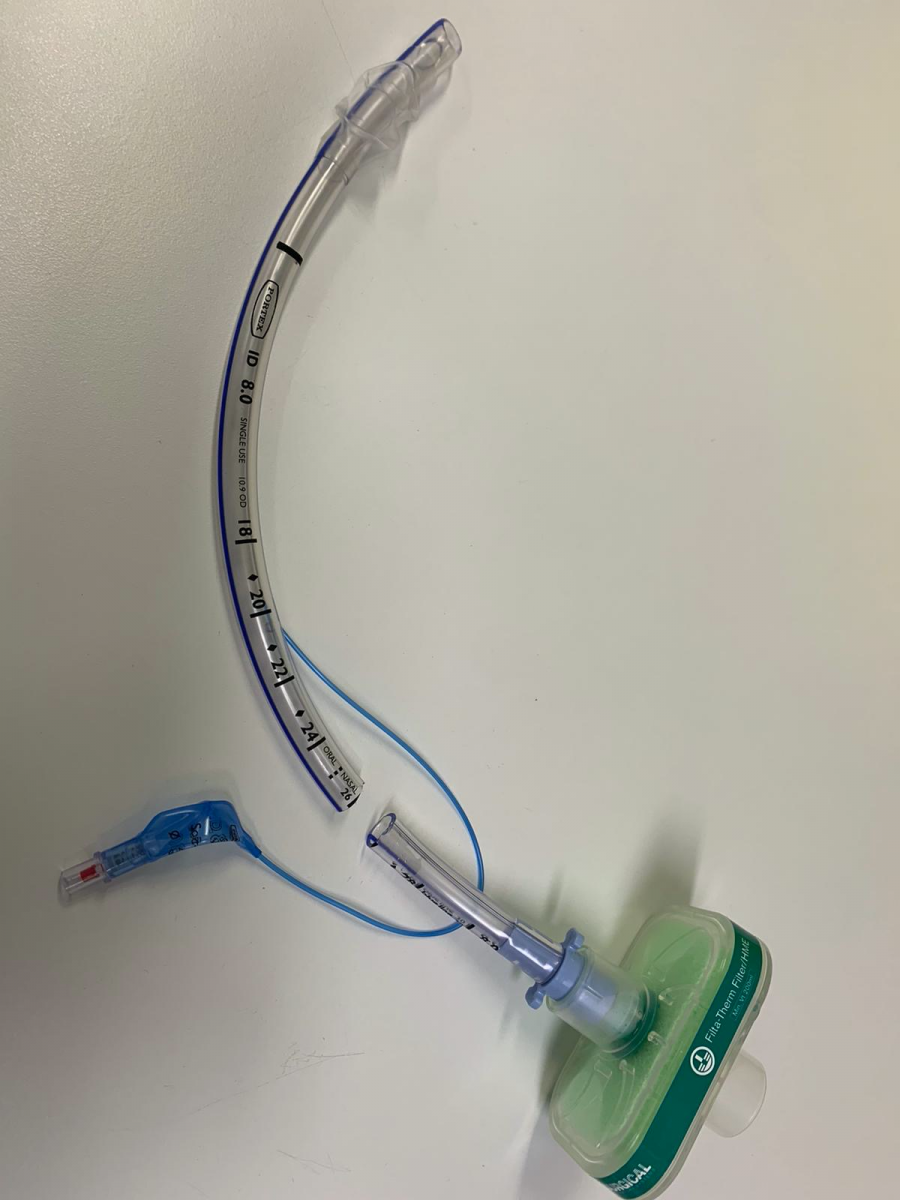 Therefore, the authors designed a bespoke drainage system using the Filta-Guard™ ventilator filter from Intersurgical Ltd© 2020 and a segment of endotracheal tube to use in their unit (Figures 1 and 2). The filter guarantees a filtration efficiency of >99.999% as tested on Hepatitis C and Mycobacterium tuberculosis in addition to standard test micro-organisms (4). The SARS-Cov-2 diameter varies from 60 to 140 nm, and therefore is larger than Hepatitis C virus, which has an average diameter of about 55 nm. The authors postulated that given the larger size compared to Hep C virus, this filter should be effective in preventing flow of SARS-Cov-2 across the filter; however to their knowledge, this has not been clinically tested. Regarding the possible resistance to the system added by the filter and related risk of building up pressure in the chest cavity, they believe this should be marginal. Published data suggest the above filter would generate a resistance against the passage of 30L/min of 1.0cm H2O and 2.3cm H2O at 60L/min (4).