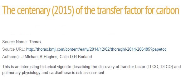 | The Centenary (2015) of the Transfer Factor for Carbon Monoxide (TLCO): Marie Krogh's Legacy J. Michael B. Hughes Colin D. R. Borland |