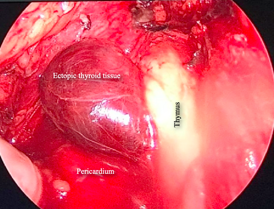 Boasquevisque CH. Ectopic Thyroid in the Anterior Mediastinum Resected Through a Video-Assisted Transcervical Approach: Case Report. July 2019. doi:10.25373/ctsnet.8326949.