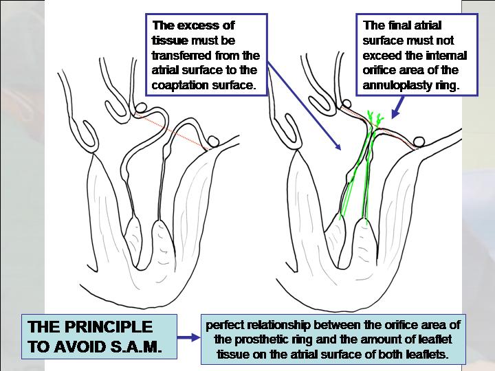 - The excess of tissue must be transferred from the atrial surface to the coaptation surface in order to avoid SAM. (Figure 5, 6).