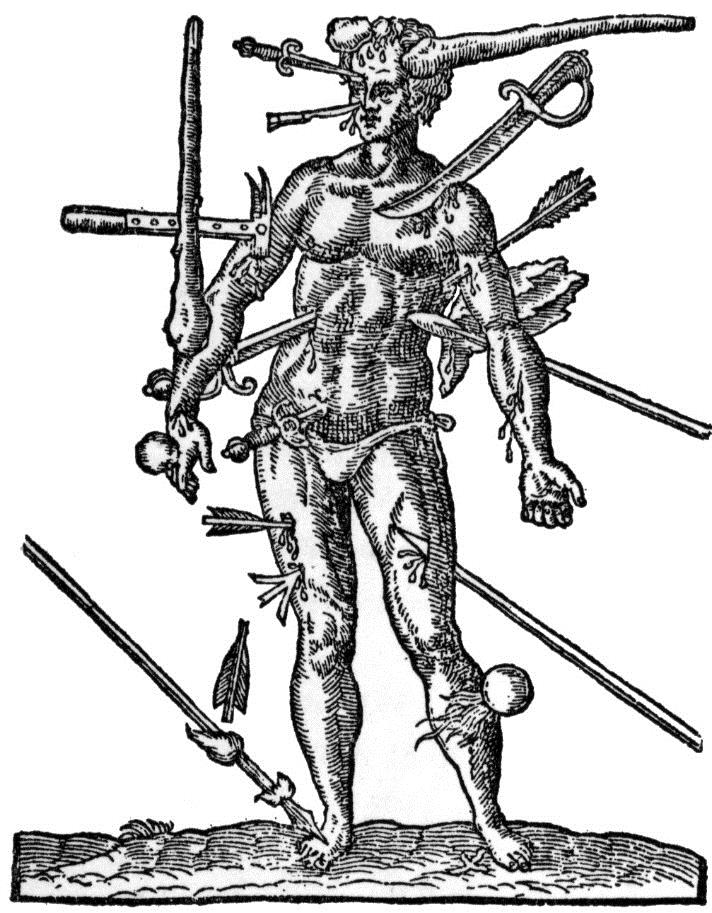 4. Pare A. The works of that famous chirurgion Ambrose Pare. 1st ed. London: Th. Cotes and R. Young, 1634.  Accessed via Wikipedia Commons [Internet]. Available from: https://commons.wikimedia.org/wiki/File:Wounds_Man.jpg