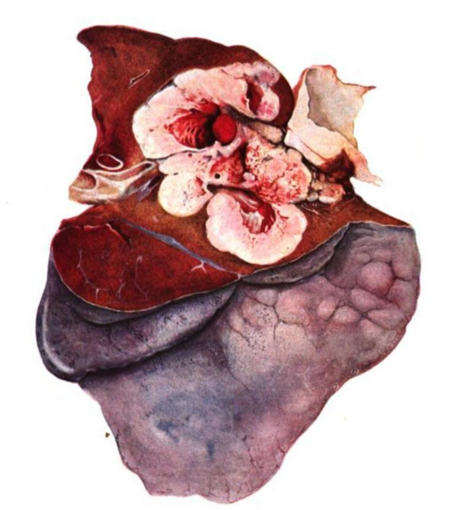 Fig. 3: Specimen from the resection of a right lower lobe primary bronchial carcinoma. Davies, 1913 (20)