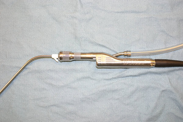 Figure 2. The handpiece enables spatial control of the blade and is attached to suction to evacuate debrided materials.