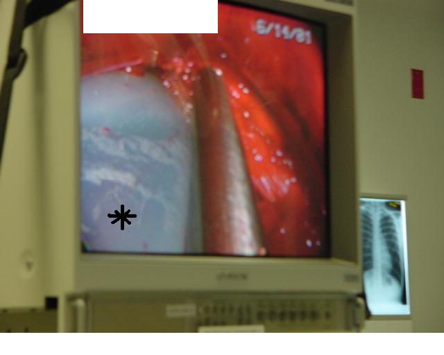 We utilize the endoscopic saphenous vein harvesting equipment from our adult cardiac program to create the tunnels endoscopically, under visual guidance (Figure 6). We have found similarity between the tunnel necessary for endoscopic saphenous vein harvesting and the tunnels for minimally invasive pectus repair and we feel that the improved visualization afforded by this technique might decrease the potential for cardiac or mammary artery injury during minimally invasive pectus repair.