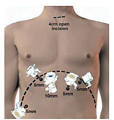 | Figure 1. Thorascopic port placement for MIE. |