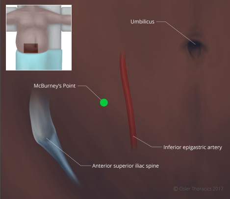 - Pearl: The RLQ port. The RLQ is needed for the feeding tube. However, it is of critical importance for the creation of the gastric conduit because of the downward traction that it provides. The port is placed at McBurney’s point, making sure to avoid the inferior epigastric artery.