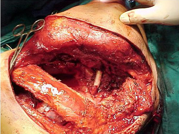 It is not usually necessary to reconstitute the posterior defect in the chest wall, as it is covered by the scapula. However, if more than three ribs are removed, leaving a large anterior or posterior defect, the defect can be reconstructed using Marlex mesh or a Gore-Tex patch to avoid an anterior flail chest or a trapped scapula.