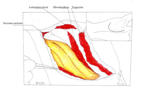 | Figure 5: Shaw-Paulson’s thoracotomy. | Figure 6: Diagram of the flap of serratus posterior superior muscle. |