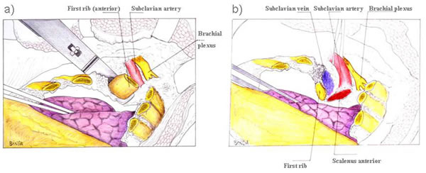 - Perform careful superior dissection of the first rib to avoid nerve and vascular injuries.