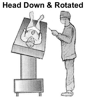 For Lateral LV wall presentation (Obtuse Marginals, Posterolateral branches of right coronary artery) the OR table is placed in steep Trendelenburg position (Figure 3) and the table is raised and rotated toward the right (Figure 4). This will allow gravity to displace heart to the right and apex anteriorly. Suspensory sutures on the right side of the pericardium are removed. The right pleural space is opened and the right pericardial incision is extended towards the inferior vena cava. These maneuvers allow the heart to move toward the right pleural space. Additional deep pericardial retraction sutures are placed on the posterior pericardial surface on a line drawn from the left inferior pulmonary vein to the inferior vena cava, halfway between the cava and pulmonary vein (third in Figure 2).