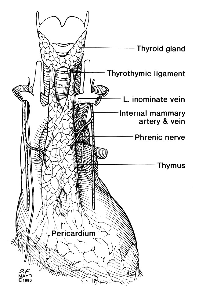- Trastek VF. Thymectomy. In Kaiser LR, Kron IL, and Spray TL (eds): Mastery of Cardiothoracic Surgery. Philadelphia, Lippincott-Raven Publishers, 1998, p 105.