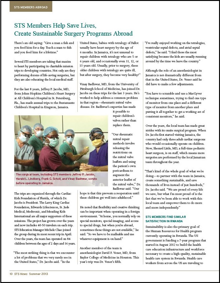 This article originally appeared in the Summer 2013 edition of STS News. Article posted with the permission of The Society of Thoracic Surgeons.