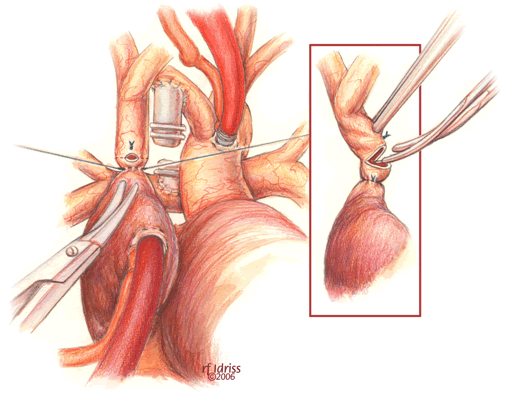 - The anterior row of interrupted sutures placed in the bi-directional Glenn between the SVC and the pulmonary artery is helpful to reduce the chance of a purse string effect and subsequent stenosis. This technique is especially helpful for small caliber vessels.