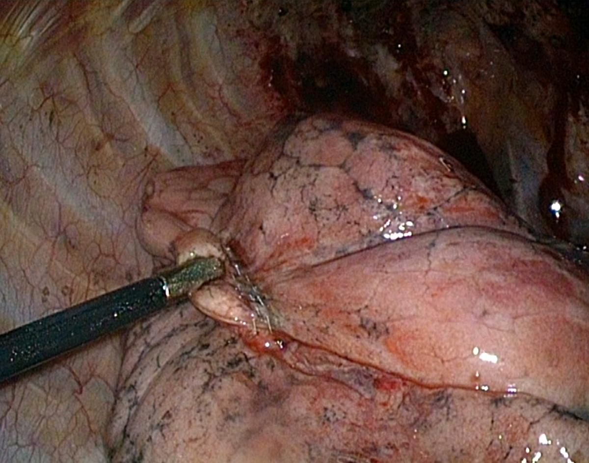 - Exposure of the hilum or fissure may be facilitated using an additional 3 mm grasping forceps for lung retraction. It is inserted directly through the skin without a trocar, thus reducing trauma to minimum.