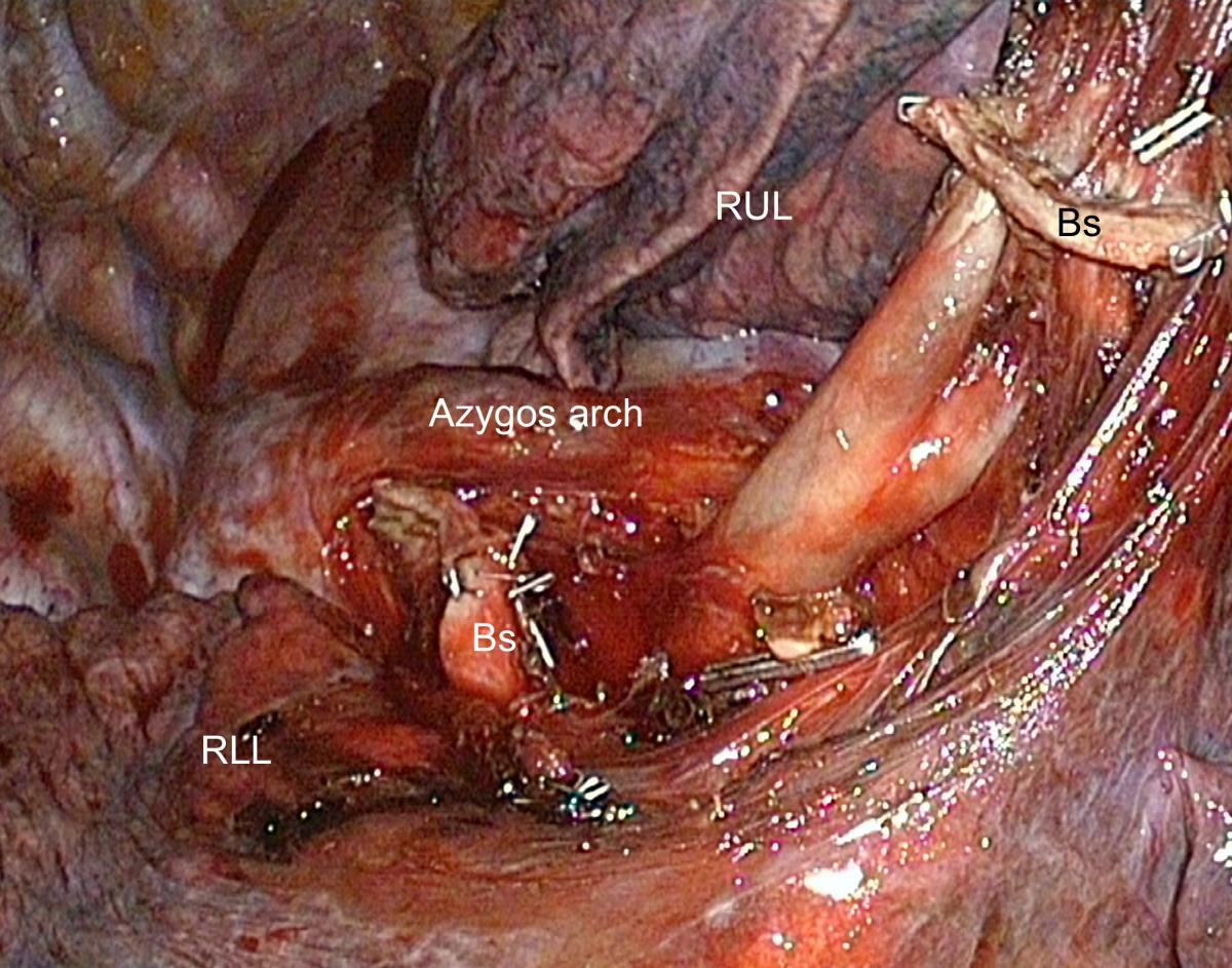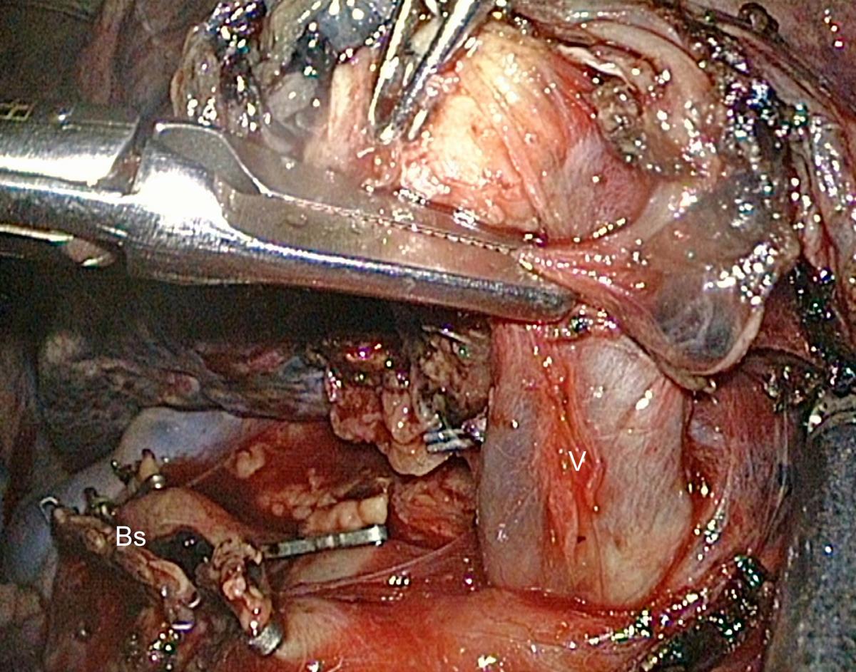(V = vein; Bs = Stump of the right upper lobe bronchus)