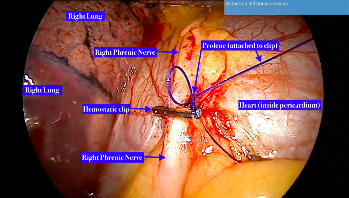 Clipping the phrenic nerve was temporary, which reduces the risk of diaphragm paralysis. The temporary clip was made of Prolene and removed 10 days after surgery.