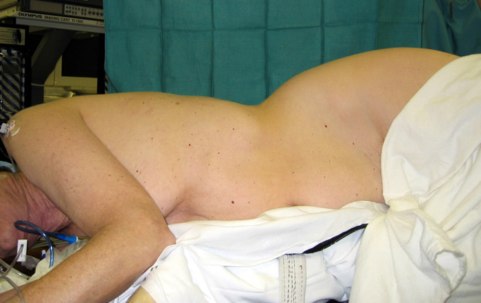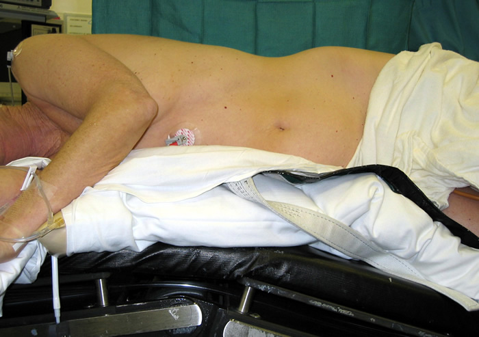 | Figure 2: Patient in wrong position because hip would obstruct downward movement of camera |