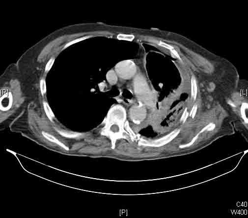 He made an excellent recovery with daily physiotherapy to encourage shoulder movements. He was discharged with oral analgesia on postoperative day 4. At 1-month follow-up the patient had no pain at all, discontinued analgesia on postoperative day 17 and demonstrated a full range of shoulder movement. His chest x-ray was unremarkable and the wound healed without complication.
