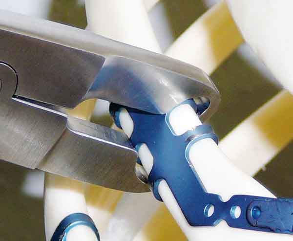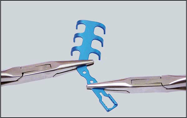 | Figure 15: The clips have been joined by the titanium bars. | Figure 16: Bar crimping tool. |