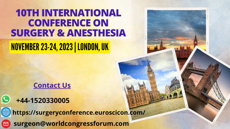 We are glad to welcome you at our new destination at London, UK on November 23-24, 2023 for our upcoming Event on 10th International Conference on Surgery & Anesthesia organized by EuroScicon.