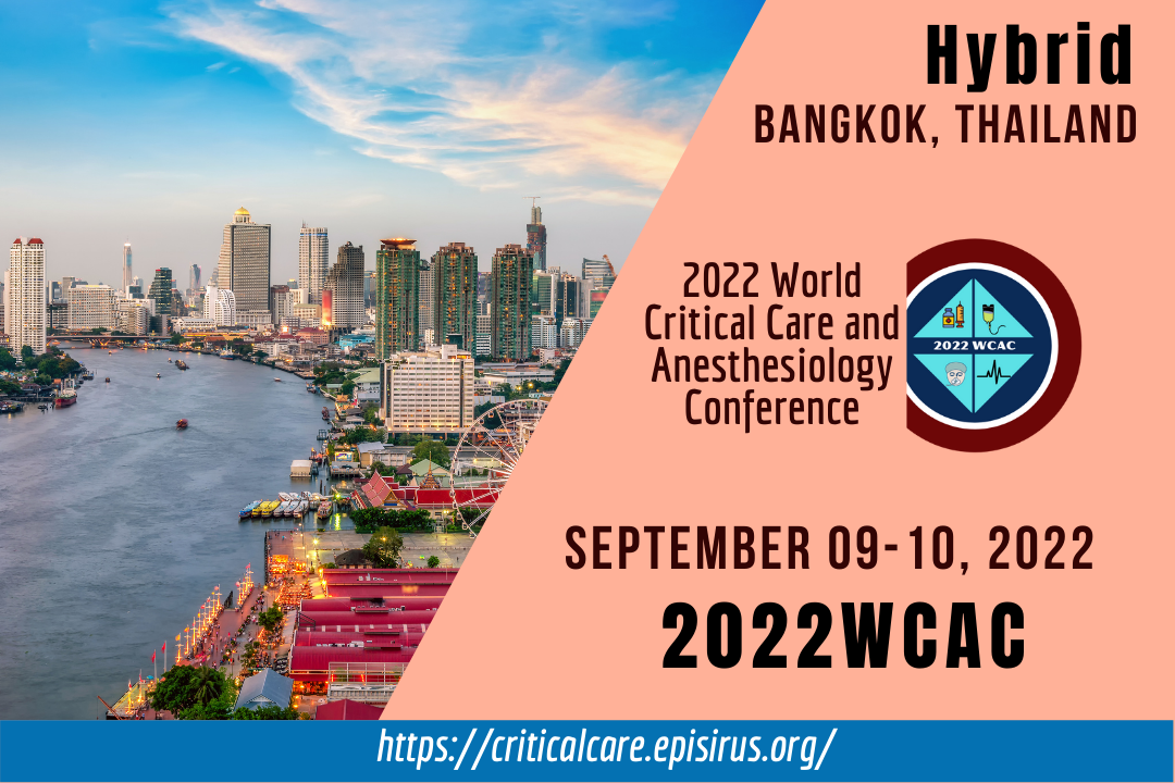 2022 World Critical Care and Anesthesiology Conference (2022WCAC) is the 4th Edition educational event which is designed to advance knowledge and expertise in trauma and critical care that rotate between continents and are organized in collaboration with national and international Anesthesiology and Critical Care societies and associations. This International Congress 2022WCAC is going to be held during September 09-10, 2022 in Bangkok, Thailand. The conference is targeted to the international Critical Care Medicine community as well as other healthcare professionals involved in multidisciplinary critical care surgical challenges; For every community, there continues to be a need for surgical and medical teams to evaluate and treat the severely injured patients. It is appropriate that this Critical Care Conference Congress take the action of leading a continuing education venue for the complex operative and critical care surgical challenges and become the epitome of such series.