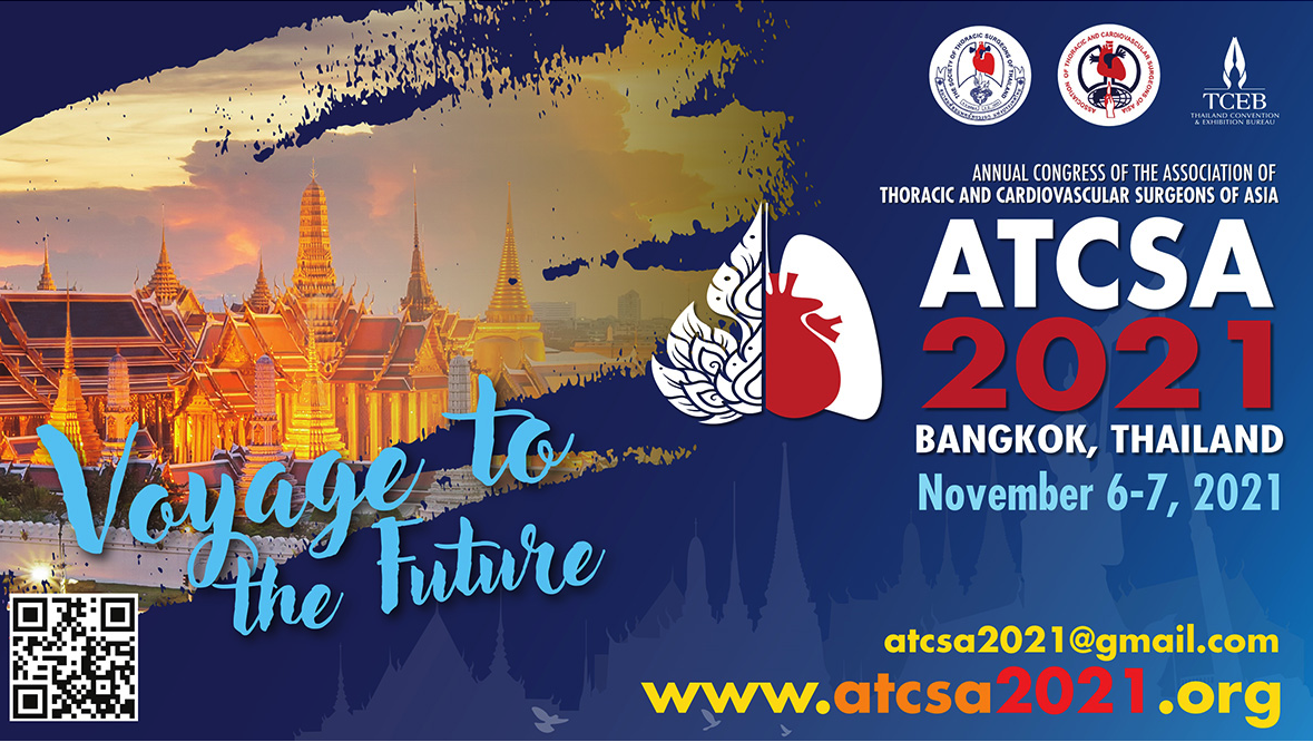 Due to the pandemic of COVID-19, the 30th Annual Congress of the Association of Thoracic and Cardiovascular Surgeons of Asia has been postponed and set the new date at November 6-7, 2021. The meeting will be conducted in fully virtual platform. The registration for this meeting is free of charge, you all are welcome to join. Please log in to our site for preregistration and seat booking. The abstract submission is now opened til September 30, 2021. www.atcsa2021.org