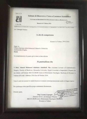 Lecturer & Consultant of Thoracic Surgery - Alexandria University of Egypt since 2020