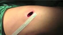 A 3.5 cm Single Incision VATS Cystotomy and Cappitonage for a 15 cm Hydatid Cyst [1]