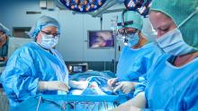 The three main branches of the FET were used to reconstruct the innominate, left carotid, and left subclavian arteries. The left subclavian artery was found to be very friable, so the decision was made to tie off the vessel and oversew the stump. The left carotid and innominate arteries were reconstructed using a strip of Teflon and continuous 5-0 Prolene sutures. After careful deairing, flow was restored sequentially to the head and neck vessels, and the patient was rewarmed fully.