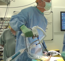 This video demonstrates a left VATS diaphragm plication using the ArtiSential® wristed instruments. These instruments allow for robotic-like movements with instruments for VATS procedures. The author used an automated camera holder, which allows the surgeon to control the camera, negating the need for an assistant, and again replicating one of the benefits of robotic surgery. The surgeon is in control of their own camera and uses robotic-like instruments that are powered by the surgeon rather than by electronics, so this method is called surgeon-powered robotics. The disadvantage is that the instruments still move like VATS instruments so VATS skills are necessary, but apart from the cost advantage over robotic surgery, the surgeon is also with the patient, and in operations such as a lobectomy, the surgeon would be able to fire the stapler or be there in case of emergency. Thus these instruments take a great leap in reducing the gap between VATS and robotic surgery.