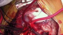 Through a median sternotomy, on a beating heart with mild hypothermia, the patient underwent bilateral branch pulmonary arterial augmentation with decellularized pulmonary homograft patches. Three patches were used on the left main pulmonary arterial branches, and four patches were used on the right side. The cardiopulmonary bypass time was 316 minutes.