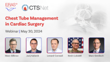 ERAS Cardiac Society once more conducted a joint webinar with CTSNet on May 30, 2024, bringing about presentations, discussion, and questions on, "Chest Tube Management in Cardiac Surgery." The session included presentations from Dr. Marc Gillinov, Dr. Jurij Kalisnik, and Dr. Lenard Conradi, with Dr. Kevin Lobdell and Dr. Marc Gerdisch serving as the webinar's moderators.