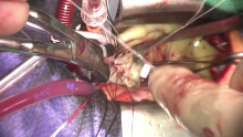 In this video, Dr. Vince Gaudiani demonstrates how to perform an Onyx Chord-X chordal repair for a P2/P3 prolapse. He began by cannulating the femoral vein, then performed an upper ministernotomy before placing a right superior pulmonary vein vent and aortic cannulation with antegrade cardioplegia. The roof of the left atrium was then opened, and stay sutures were placed to optimize the view. All annuloplasty sutures were placed before assessing the valve.
