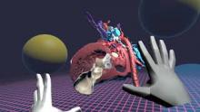 Again, the atrial septum had three defects (a small primum component of the complete canal, a separate secundum defect, and a coronary sinus defect). In order to gain adequate exposure to the left AVV valve, the limbus bridging the secundum component and coronary sinus defect was divided {4:34:55}. This band formed the inferior margin of the secundum defect and superior margin of the coronary sinus defect.