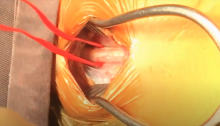 In this video, the authors demonstrate the procedure of cannulation of the right common carotid artery. The patient was a 17-year-old girl with a history of ventricular septal defect closure and patent ductus arteriosus ligation done 10 years previously. She presented with acute type A aortic dissection. Her right subclavian and right common carotid artery both were directly originating from the arch of the aorta. The right common carotid artery was the ideal option for arterial cannulation.