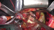 In this video, Dr. Vince Gaudiani demonstrates how to perform a complex repair of a calcified posterior leaflet. He first cannulated the femoral vein, then performed an upper ministernotomy before conducting aortic cannulation. He then administered antegrade cardioplegia and placed a right superior pulmonary vein vent.