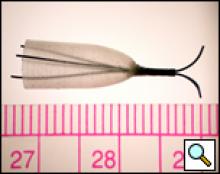 At the 2002 World Congress for Bronchology, prototype designs (Figure 3) and data from initial studies with swine were presented on valve placement and removal [6]. These studies used 4 healthy swine (52±18 Kg) and a total of 17 valves. Four days after placement, all valves were evaluated using bronchoscopic and fluoroscopic techniques, then the chest was opened to obtain visual confirmation of volume reduction. One valve in each animal was easily removed and replaced under direct bronchoscopic and surgical observation.