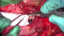 A 38-year-old male with hypoplastic left heart syndrome underwent the initial three palliations, with a final intra-atrial conduit Fontan. He presented with desaturation and liver dysfunction, and it was noted that his Fontan conduit was quite small (12 mm) and calcified. Options included combined liver/heart transplantation or replacement of his Fontan conduit. Due to his satisfactory ventricular function and Fontan hemodynamics, the decision was made to proceed with replacement of the Fontan conduit.