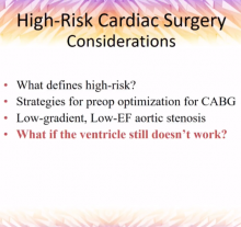 Marc Moon of the Washington University School of Medicine in St Louis, Missouri, discusses the factors that define high risk for a cardiac surgery patient, and he reviews preoperative strategies that surgeons can employ to prepare such patients for optimal outcomes.