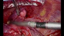 Small defects in the pulmonary artery can be managed with compression and usually do not require aggressive intervention (1-3). Major injury to the pulmonary artery, however, can lead to large volume blood loss and rapid hemodynamic collapse, if not addressed appropriately (1-3). In this case, we encountered significant pulmonary artery bleeding during a VATS lingula-sparing left upper lobectomy in a patient treated with neoadjuvant EGFR and MEK targeted therapy for lung adenocarcinoma.