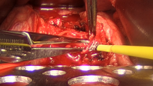 Circumferential dissection then moved to retrograde along the celiac artery. Dissection proceeded until a notably tight MAL was observed in the patient. The ligament was compressing the celiac artery and adjacent structures. Correspondingly, the tight fibrous band was released and removed using harmonic energy.