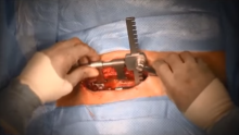 This video demonstrates a bypass procedure of the ramus interventricularis anterior artery (also known as the left anterior descending) through an 8 cm incision in the middle of the lower third of the sternum.