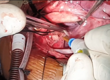 During the entire anastomosis between the LA and the confluence, the anteroposterior position of both the structures was maintained, which ensures an anastomosis without any distortion. Anastomosis was done with a 7-0 prolene running suture with locking every fourth bite to prevent a purse string effect. During the anastomosis, visualize the mitral valve and try to make an anastomosis larger than the mitral valve to accommodate for a possible postoperative narrowing due to fibrosis. A large anastomosis is ensured by: 1) fishmouthing the confluence and superior lip of the LA wall as needed and 2) the metal clip markers will give an idea of the septum where the anastomosis usually ends. In case the LA is small, the anastomosis can be extended beyond the septum onto the RA wall, which will be facilitated by the well mobilized pulmonary veins without any kinking.