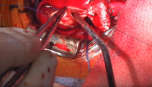 A 3.2 kg neonate was born at 39 weeks gestation with TOF with absent pulmonary valve syndrome and massively dilated pulmonary arteries. He was born in severe respiratory distress requiring immediate intubation. He was taken for operative repair at two days of life.