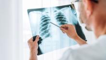 A sixty-seven-year-old man, treated previously for chondrosarcoma of the right femur with surgery and radiotherapy, presented with lung metastasis in the right upper lobe on an eighteen-month follow-up computed tomography (CT) scan. After an initial VATS wedge resection with clear margins, a nine-month follow-up CT suggested neoplastic recurrence, which was confirmed by transthoracic needle biopsy.